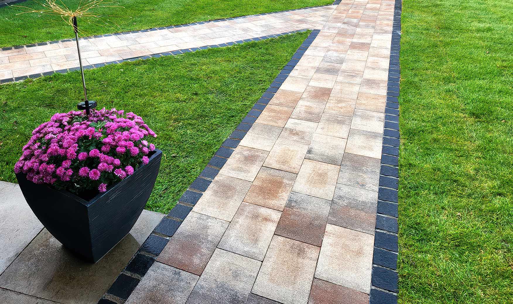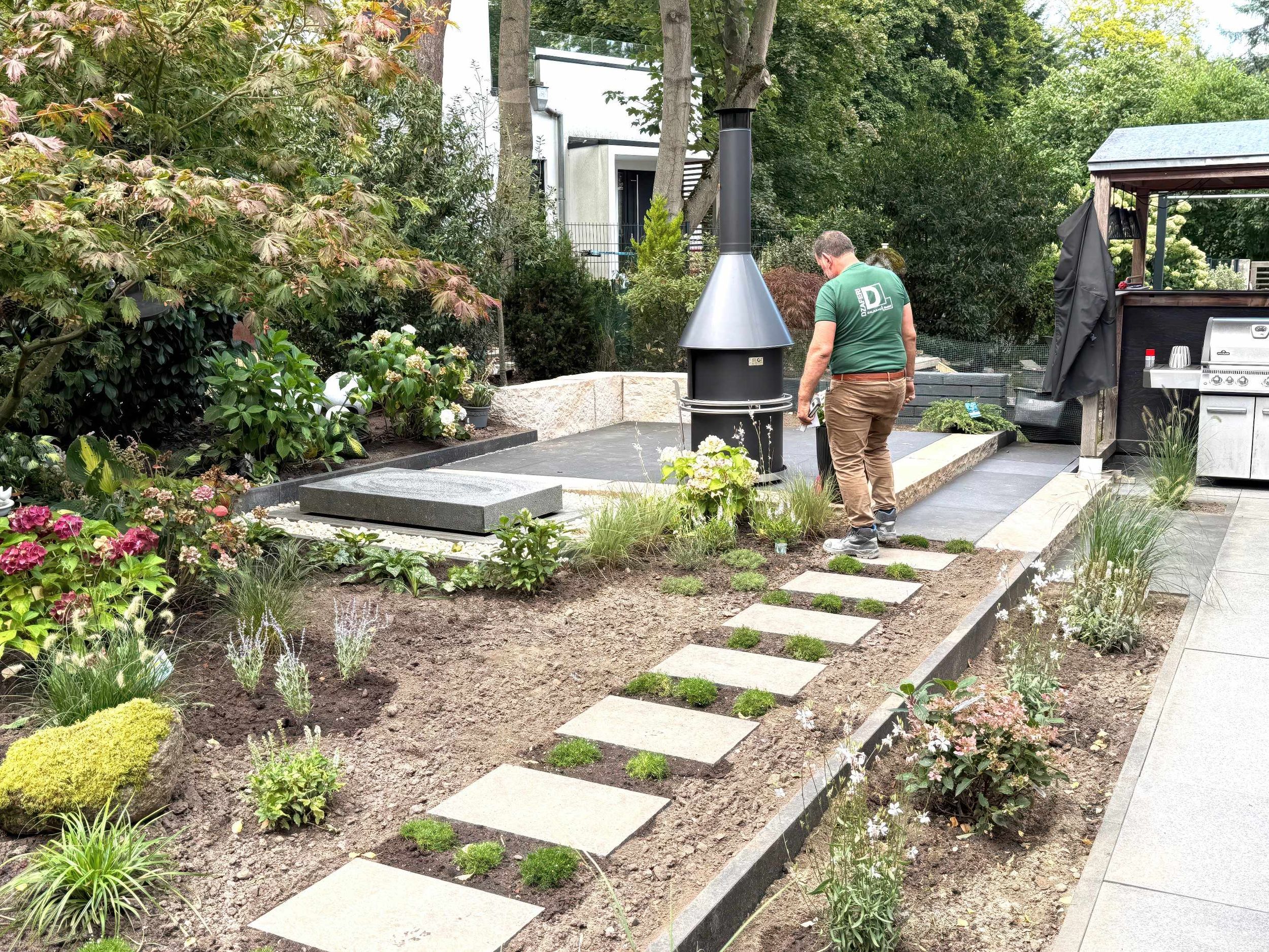 Neue Wege aus Betonplatten & Basalt, frischer Rollrasen, klare Struktur, wenig Pflege. Langlebig, strukturiert und stilvoll.